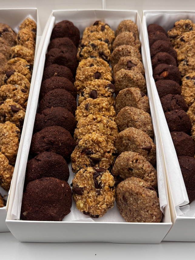 A made-to-order cookie box with gluten-free ingredients and three flavors in one easy box for gifting, office treats, tea time, and sharing.