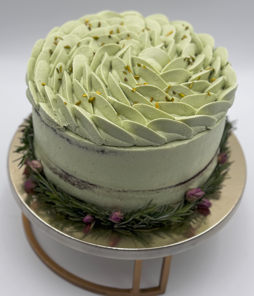 Pistachio Dream stands out from standard birthday cakes because pistachio is the point of the cake, not just a small accent.